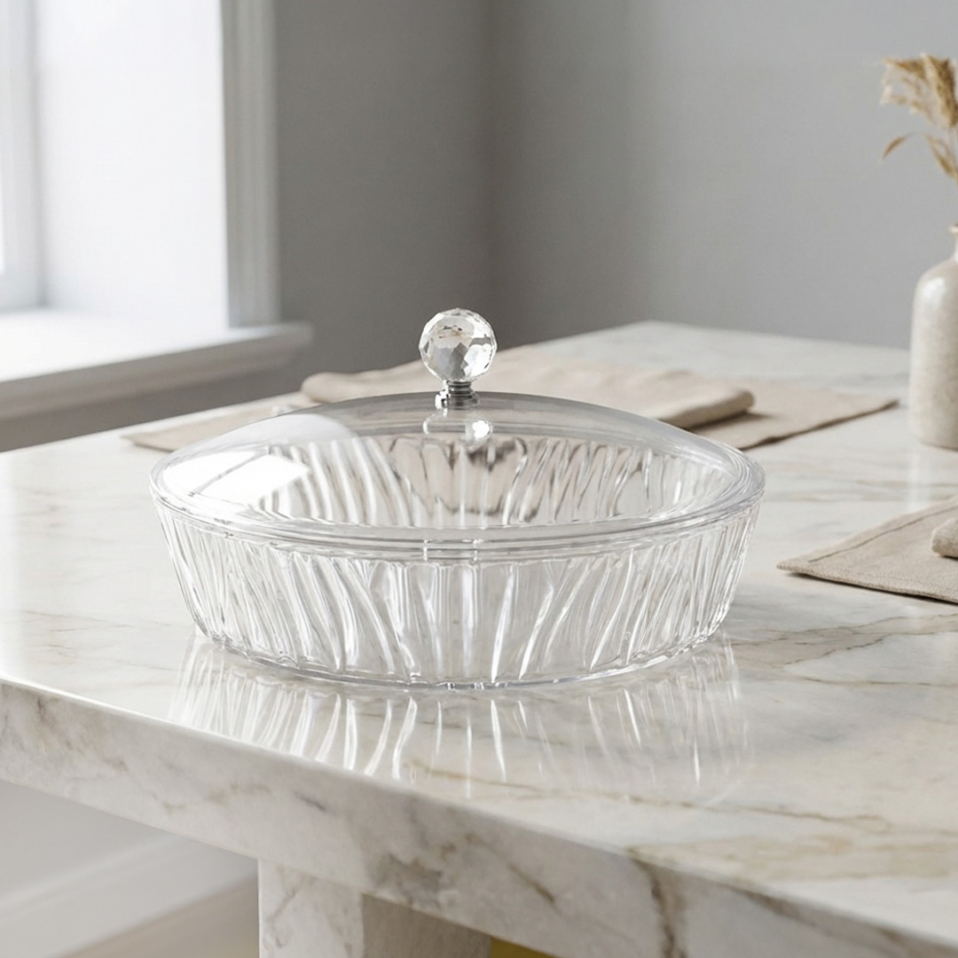 أطباق أكريليك شفافة بجودة عالية جداً، مصنوعة من أكريليك نقي، أنيقة ومثالية للضيافة بأشكال متعددة.
