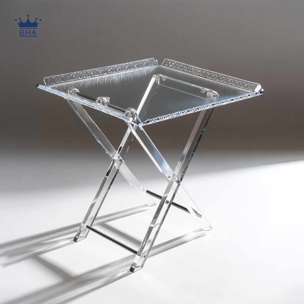 طاولات أكريليك فاخرة مع ستاند للتخزين، مصنوعة من أكريليك نقي بسماكة 8 مم، صناعة تايوانية فاخرة .