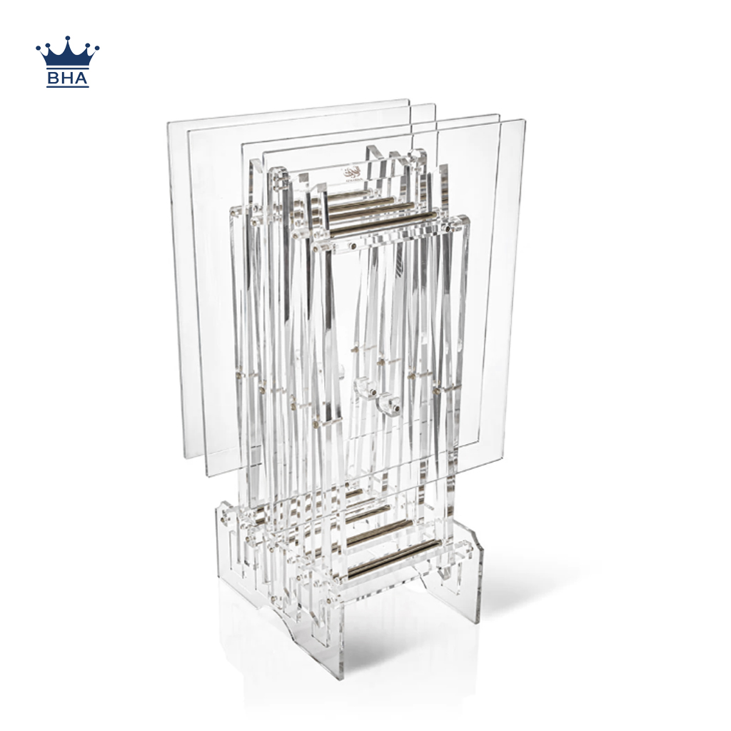 طاولات أكريليك فاخرة مع ستاند للتخزين، مصنوعة من أكريليك نقي بسماكة 8 مم، صناعة تايوانية فاخرة .