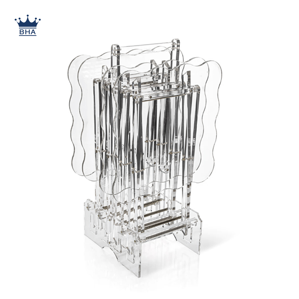 طاولات أكريليك فاخرة مع ستاند للتخزين، مصنوعة من أكريليك نقي بسماكة 8 مم، صناعة تايوانية فاخرة .